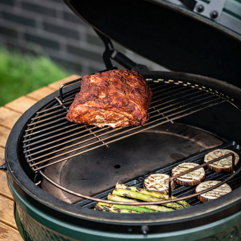 De Big Green Egg ConvEGGtor Basket is een geweldige accessoire aangezien het talloze nieuwe kooktechnieken mogelijk maakt. Het is geschikt voor de convEGGtor en alle (halve) grillplaten, waardoor alles mogelijk is. Verder is het gemakkelijk te bedienen en kunnen de grillplaten eenvoudig en veilig worden verwijderd of vervangen. Verder is de convEGGtor basket onderdeel van het EGGspander systeem.