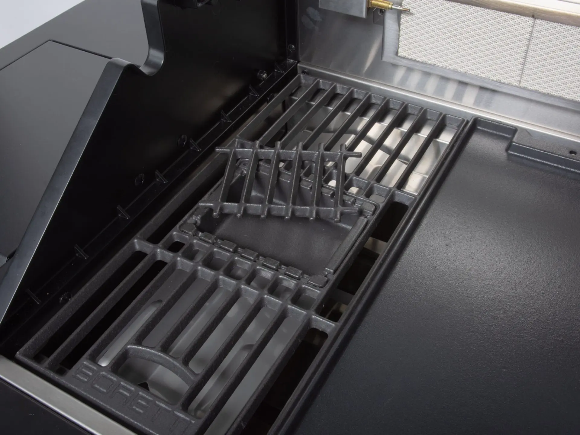 • Inclusief Geëmailleerde gietijzeren roosters, een bakplaat en een integreerbare smokerbox