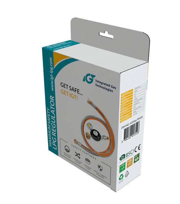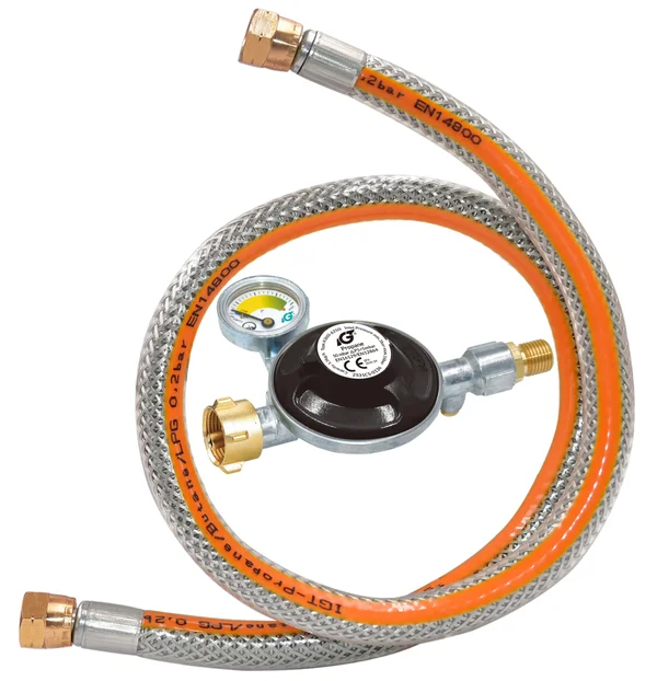 De oneQ Gasslang met Premium Drukverdeler heeft 0,8 meter slang en de juiste connectie voor de oneQ Flame. Met 30 mBar druk regulator.
