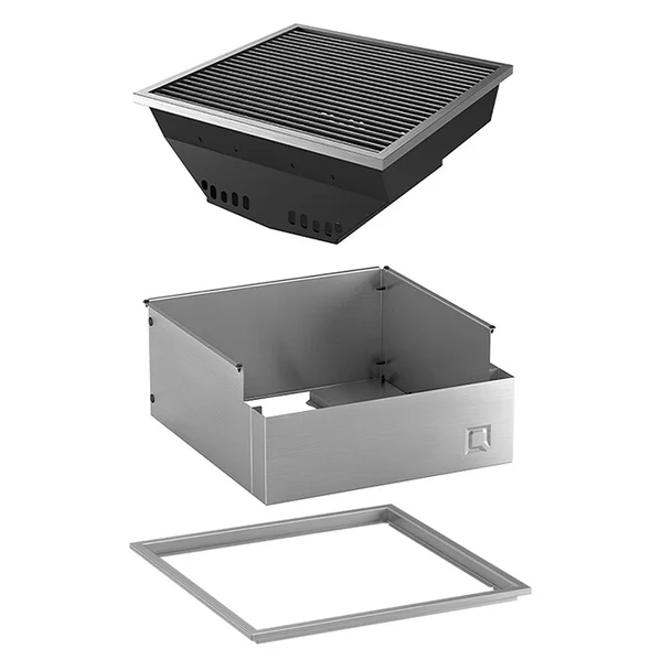 De oneQ Glow Inbouw Set maakt het mogelijk de houtskool barbecue in te bouwen in een tuintafel of buitenkeuken. Verder beschikt de houtskool barbecue over een afneembaar kolenrooster en een asbak. De inbouw set bestaat uit de Glow inbouw houtskool BBQ, Socket en Adaptor .